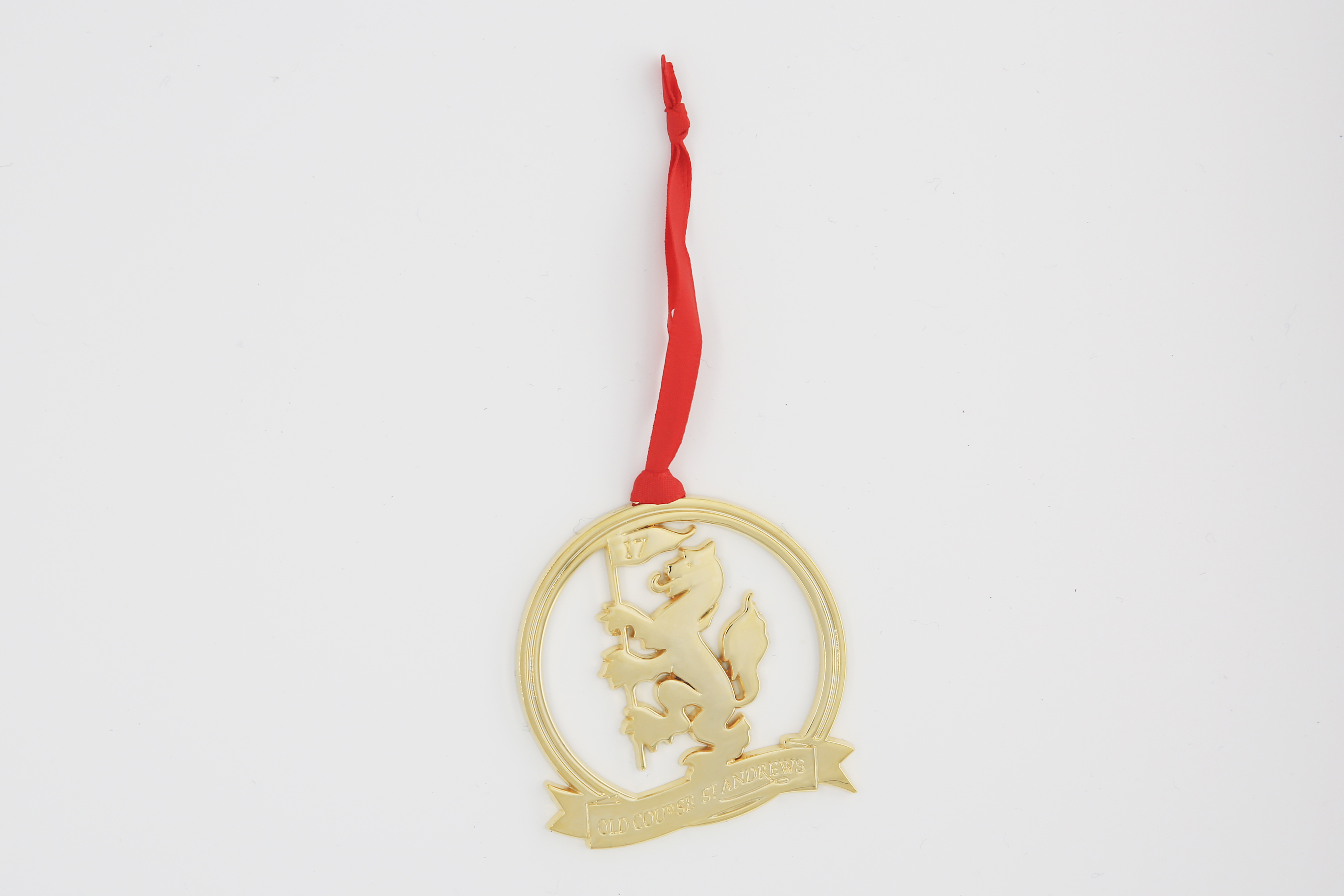 This Christmas Decoration has been exclusively designed for the Pro Shop, proudly containing our official Old Course logo in gold metal cut out, finished with a festive red ribbon, and presented in a black presentation box.