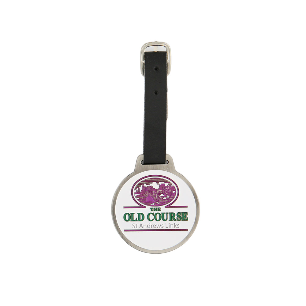 Bag Tag with an adjustable strap in black. Double sided, this bag tag features the Old Course St Andrews Links logo.