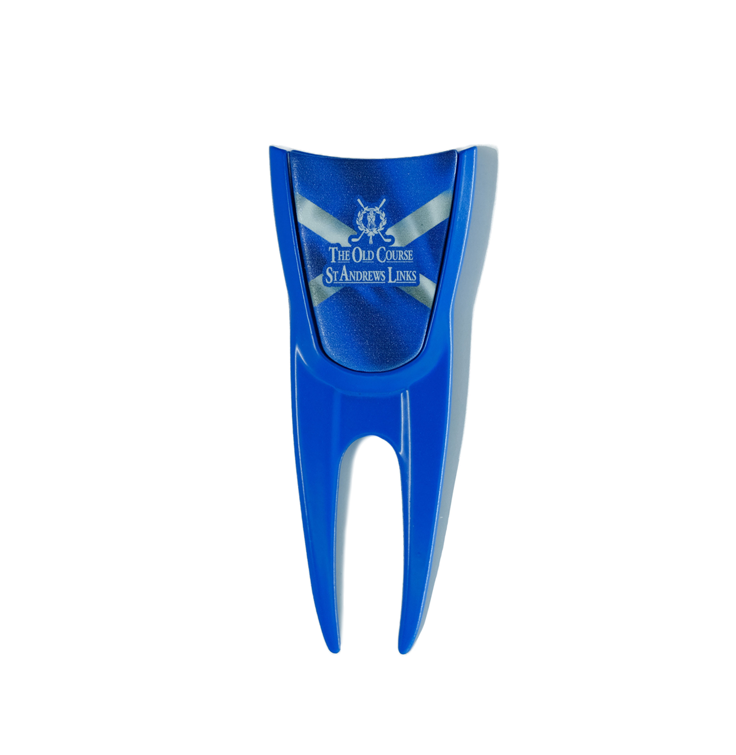 Divot tool with removable Old Course St Andrews Links ball marker in blue and is the perfect representation of Scotland.