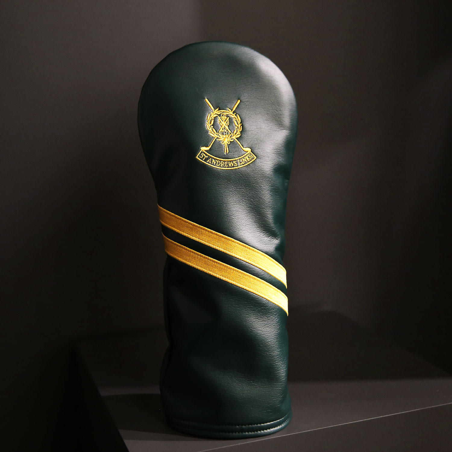Part of the St Andrews Links Tartan Collection, this bottle green and gold driver headcover features the The St Andrews Links logo embroidered in gold.